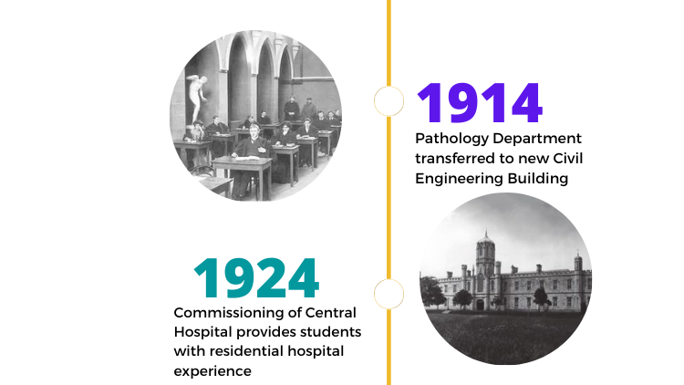 In 1924 the Commissioning of the Central Hospital provided students with residential hospital experience, in addition to the required attendance in Dublin.
