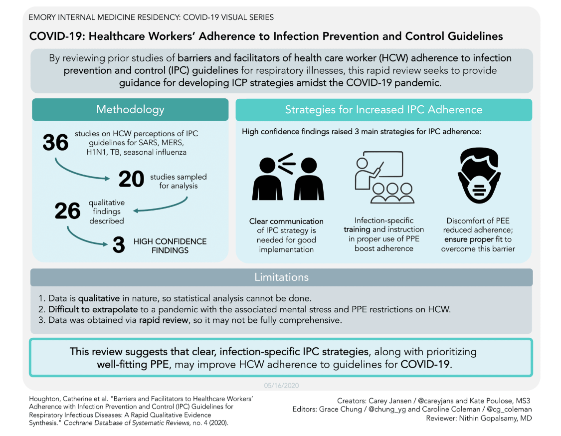 One of these looks at the views of healthcare workers on infection prevention and control guidelines, published in April 2020. This work was cited in WHO interim guidance: Prevention, identification and management of health worker infection in the context of COVID-19.
